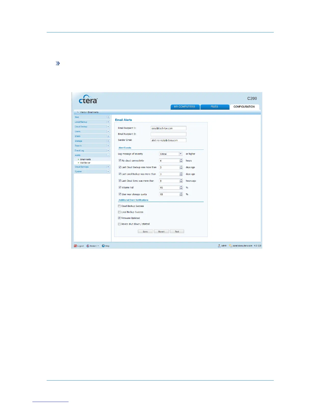 1 In the Configuration tab's navigation pane, click Alerts > Email Alerts.
