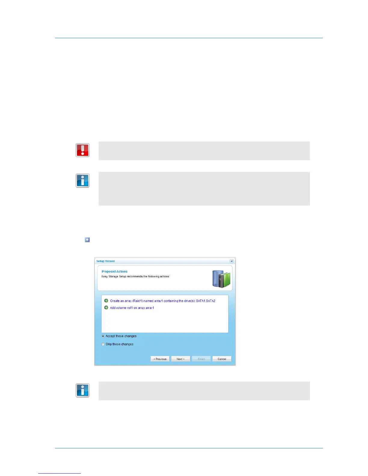 If the Setup Wizard determines that certain storage configuration changes would be
