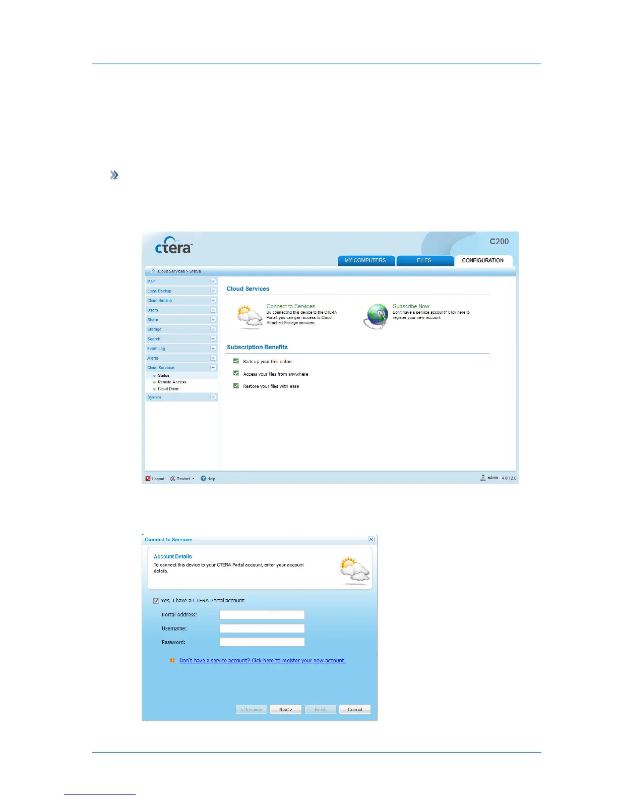 and reporting, you need to connect the appliance to your CTERA portal account.