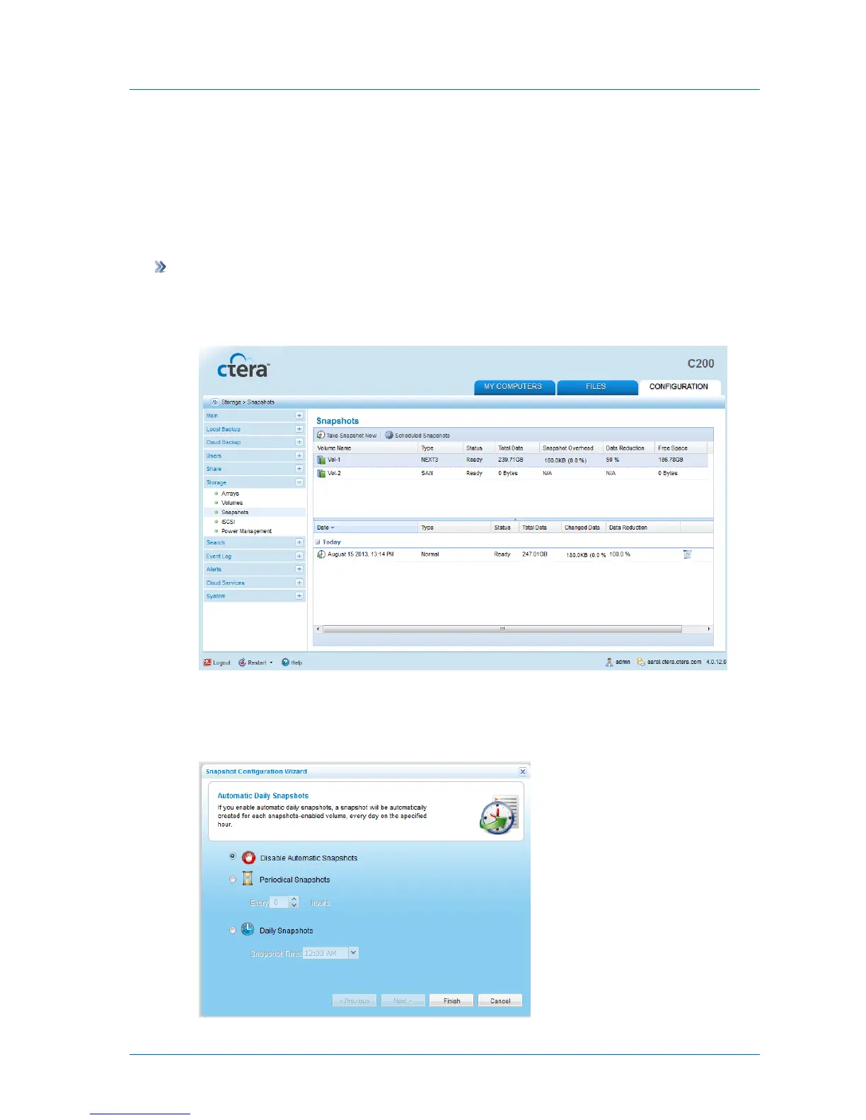 1 In the Configuration tab's navigation pane, click Storage > Snapshots.