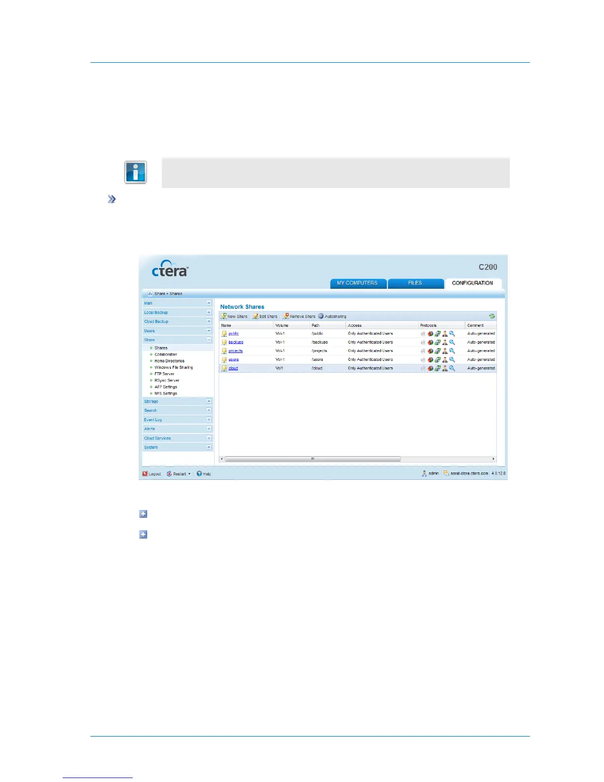 1 In the Configuration tab's navigation pane, click Share > Shares.