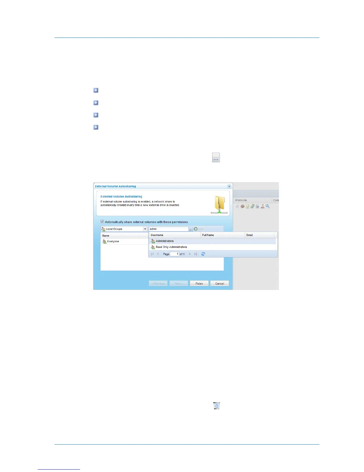 3 Add each user and user group who should have access to automatically created shares, by
