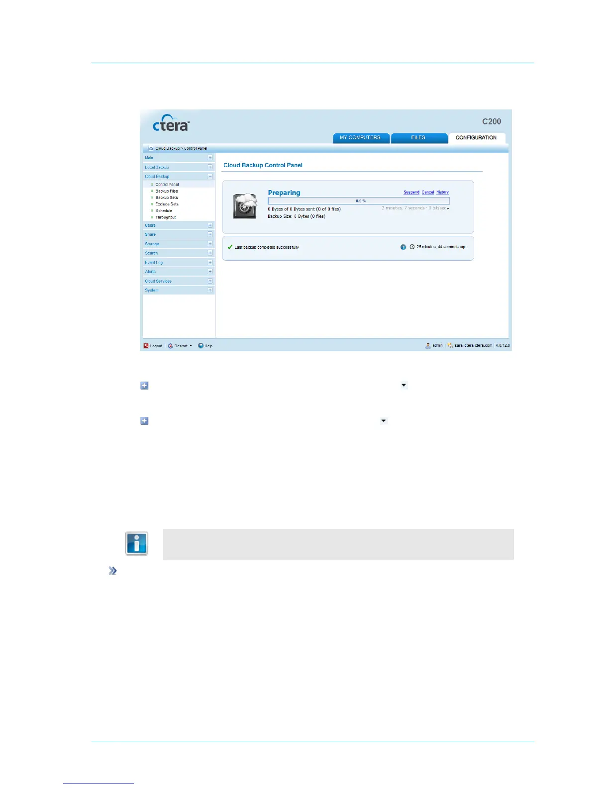 The Cloud Backup > Control Panel page appears.