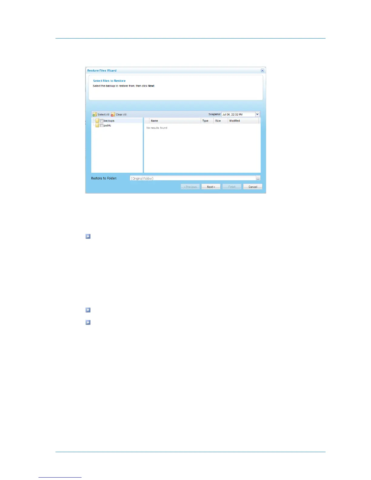4 Specify which files and folders you want to restore, by doing any of the following: