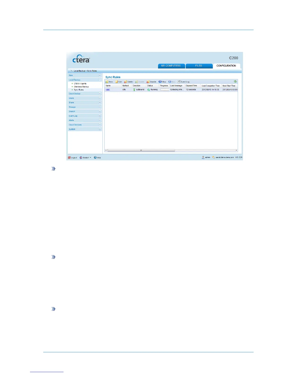 2 Select the rule for which synchronization is running, and click Stop.