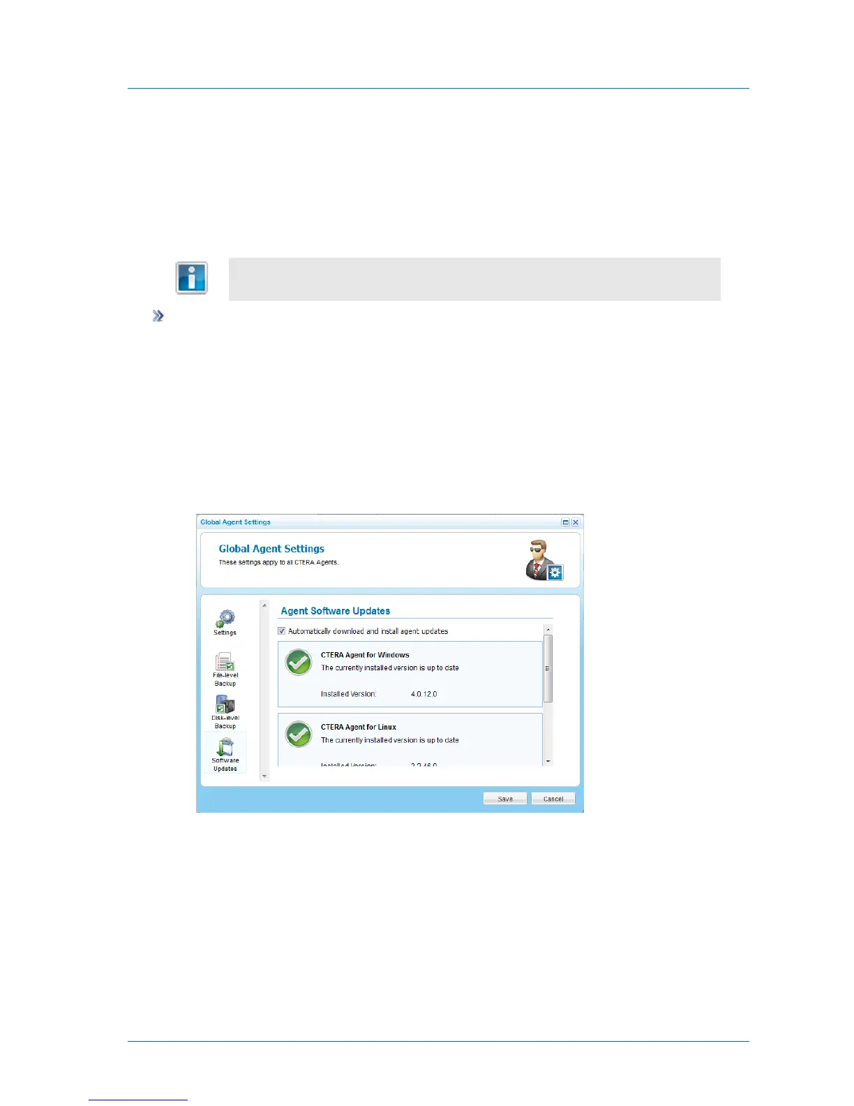 To configure global software update settings for all CTERA Agents