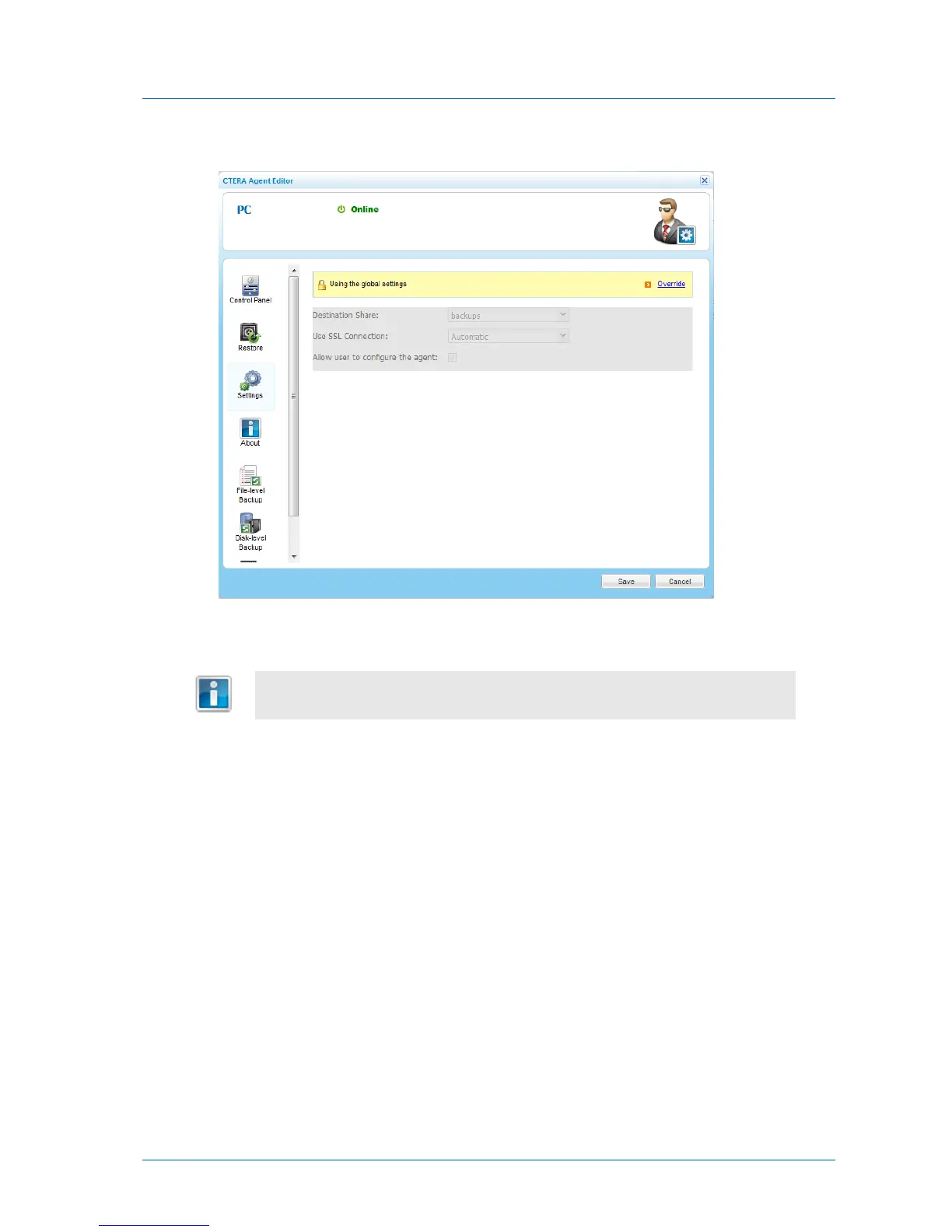 3 Click Override, to override the global general settings.
