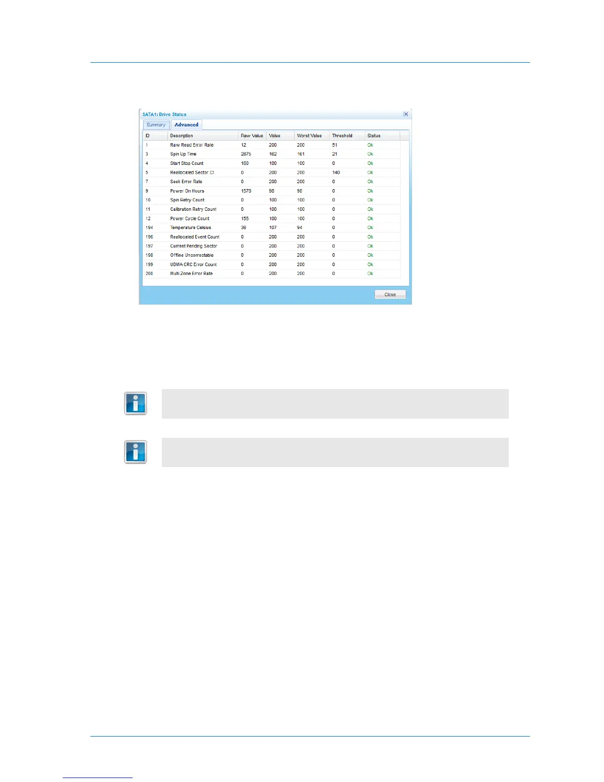 this tab displays advanced diagnostics information about the disk drive.
