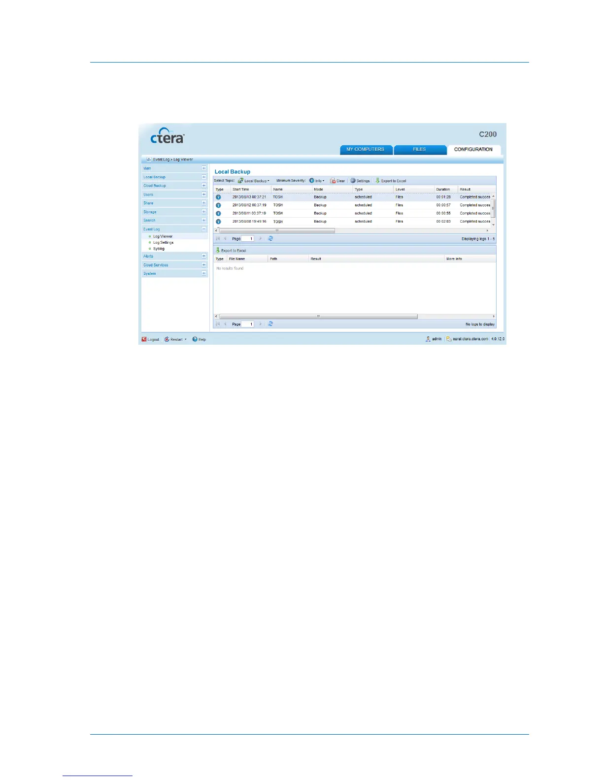 The Local Backup logs appear. For information on the displayed fields, see the following
