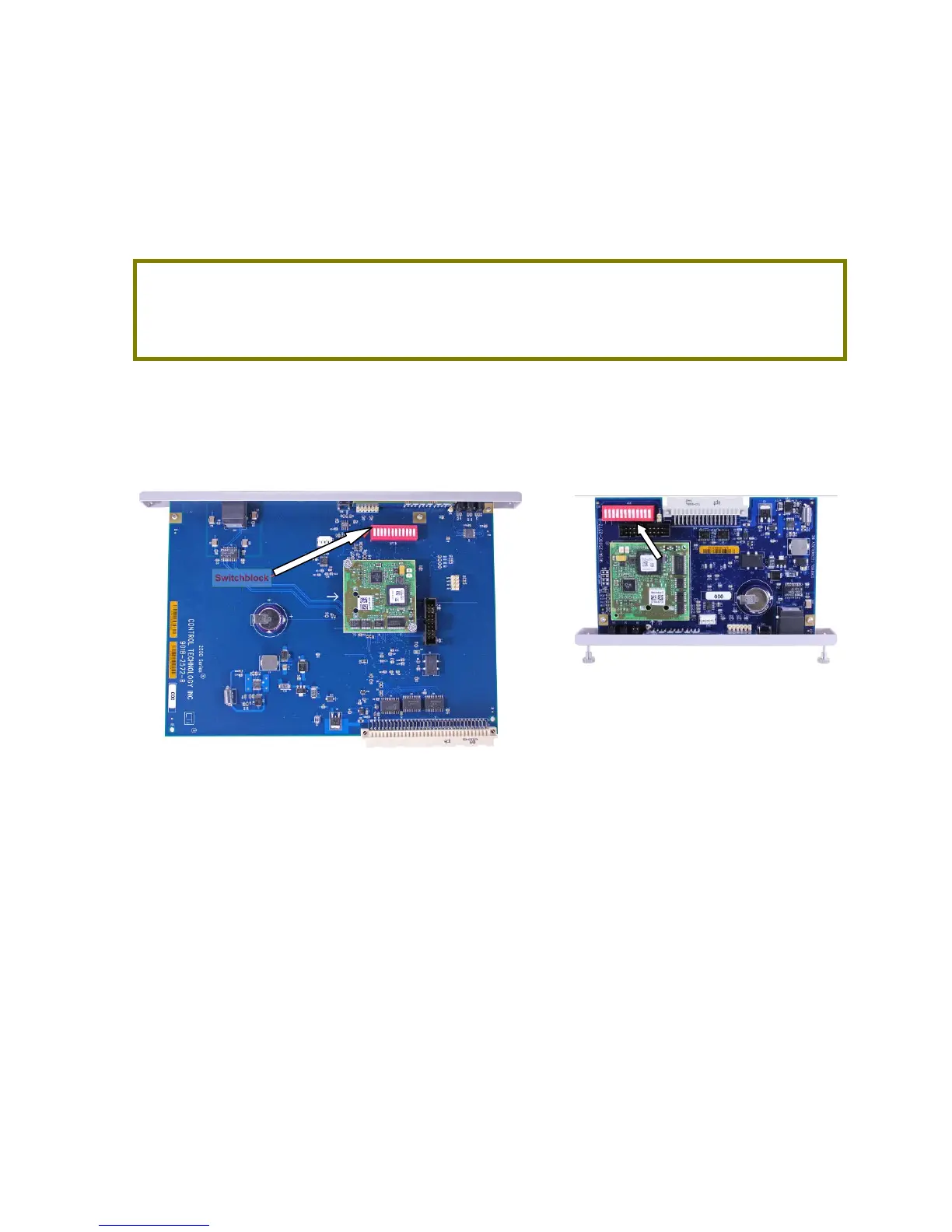 following illustration indicates the location of the switchblocks on both products.