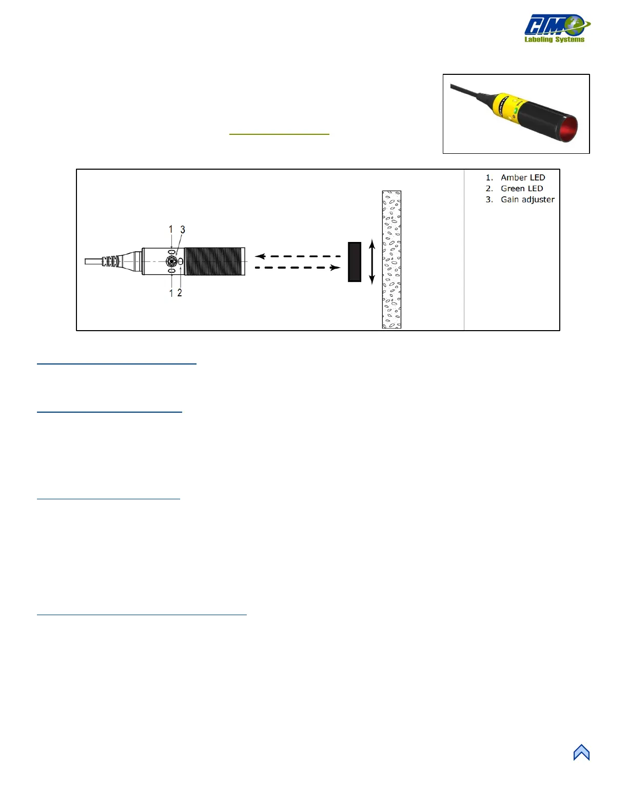 3. Move a product between the sensor and the reflector and the amber LED turns on.