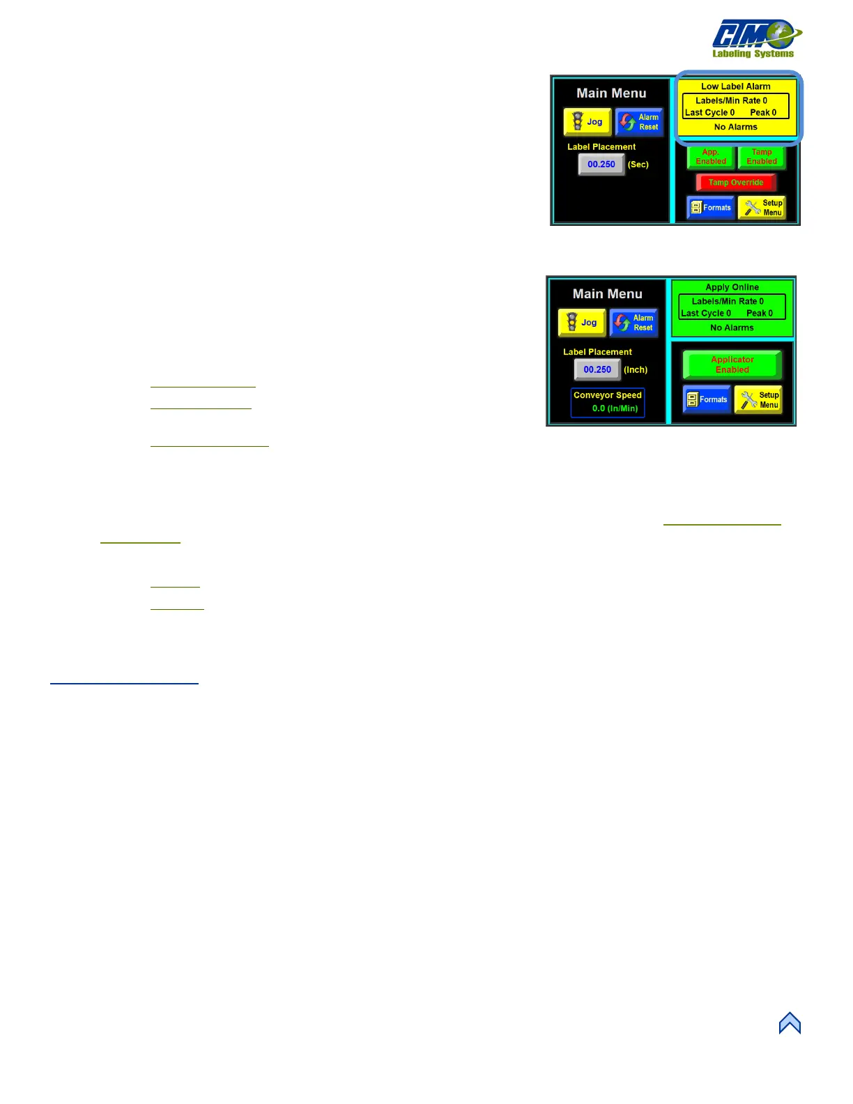 • Label Placement variable: Adjusts the label placement value of the applicator. If encoder based this value is in inches. For