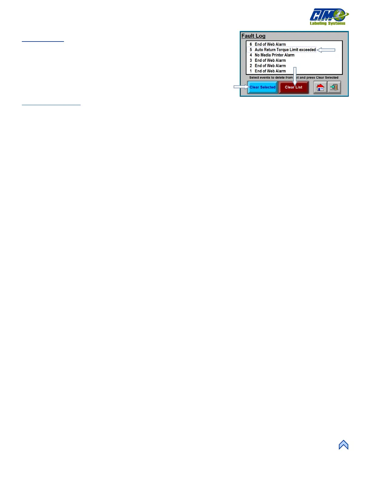 2. Tap the “Clear Selected” button [75B] to clear the fault from the list.