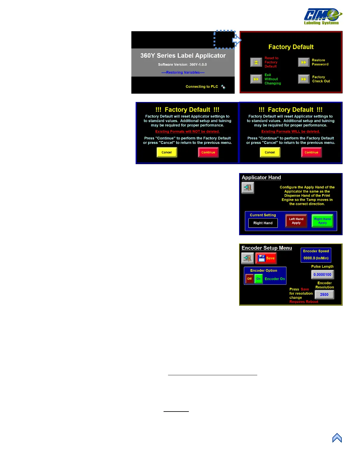The factory default screen can be accessed