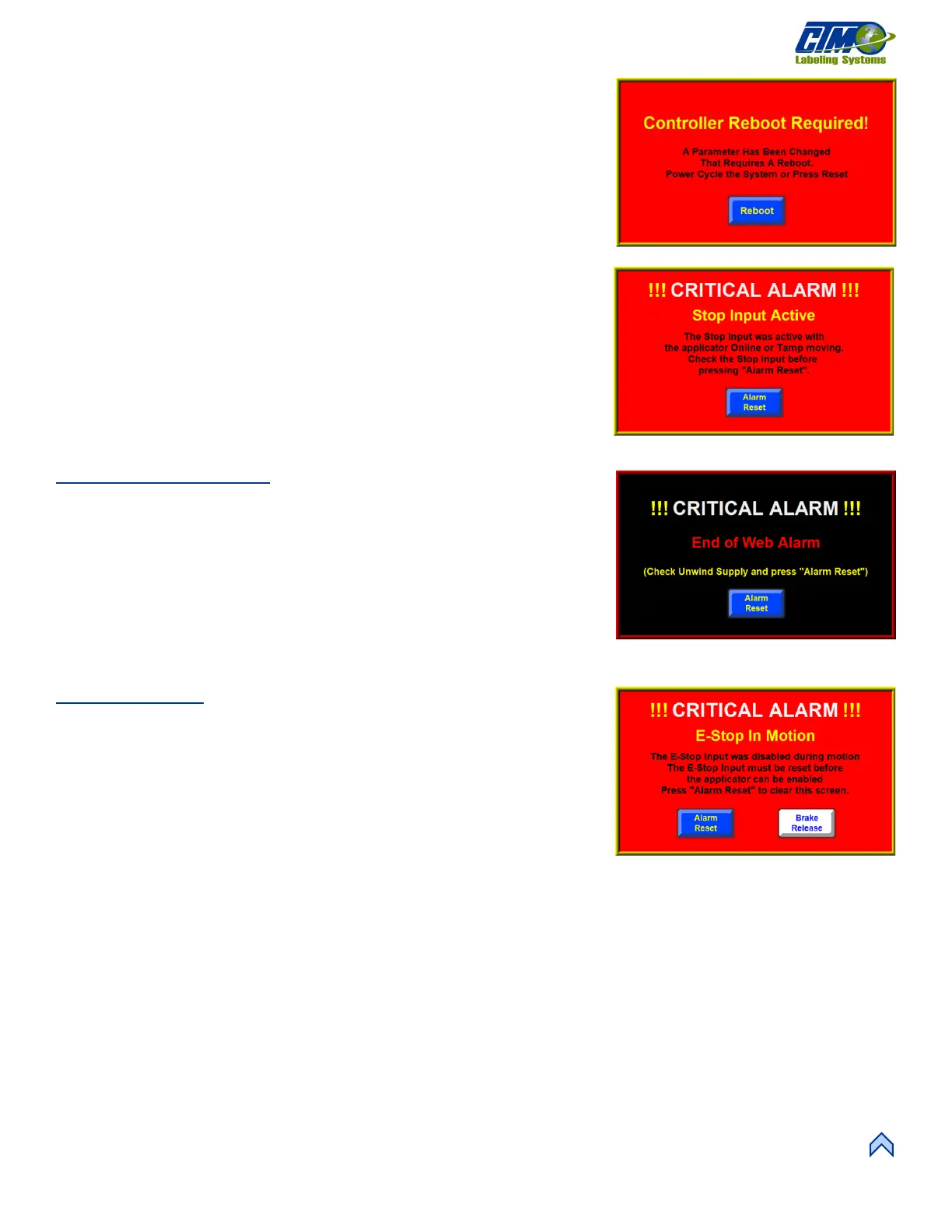 If a Controller Reboot is required, the alarm screen in Figure [30] displays.