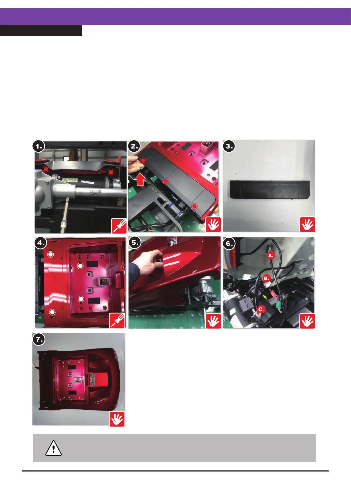 2.Remove the rear footplate cover, by disengaging the three locking pins and pulling it
