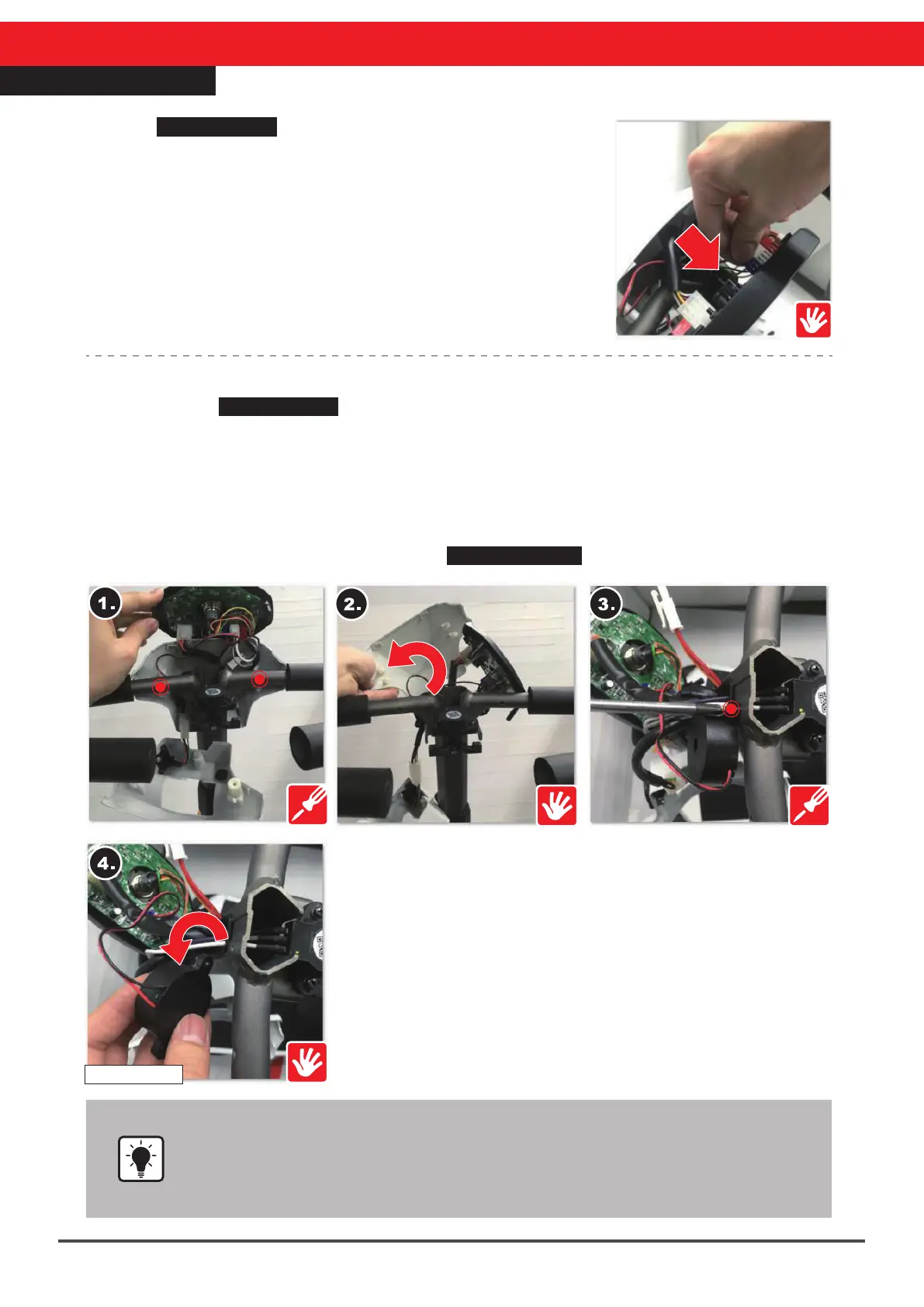 1.Remove the screws (16mm, 2pcs) on the handle and steering head front cover