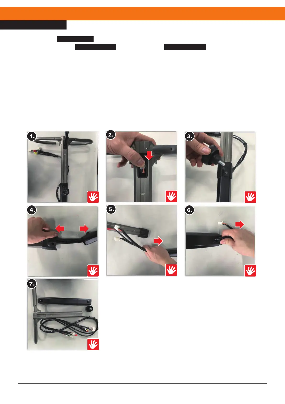 2.Insert the front end of the main cable into the hole on the top of the steering bar.