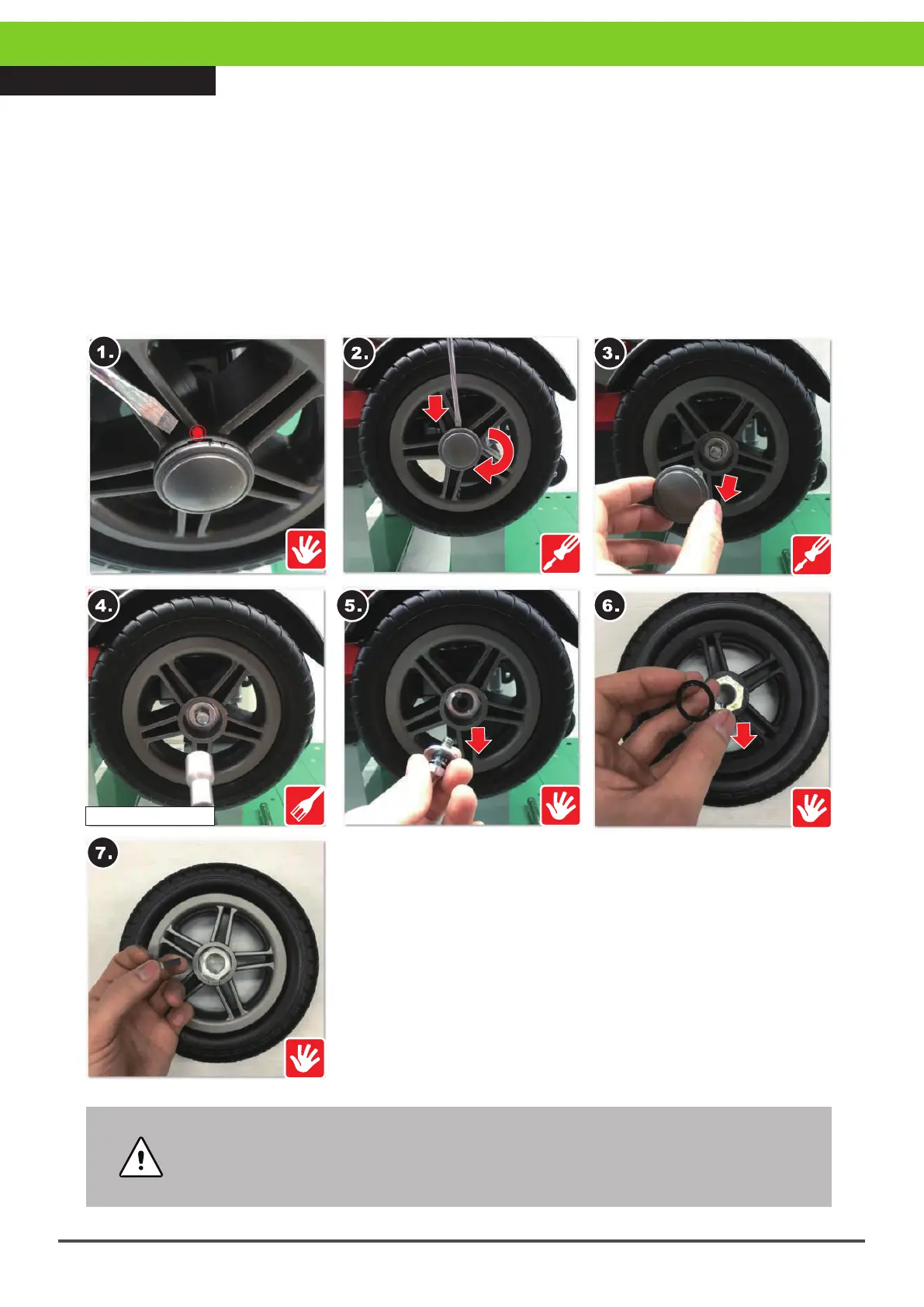 •After Step 5 the black washer may be stick to the inside of the wheel hub