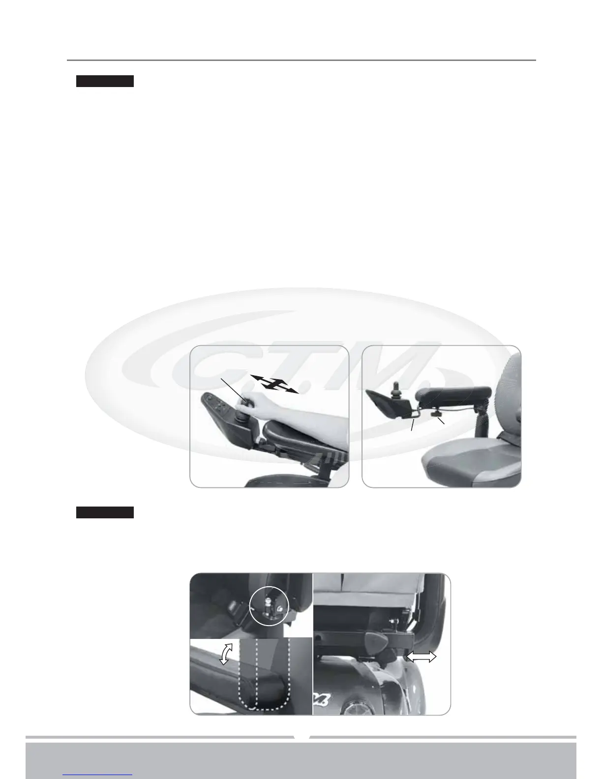 Loosen two thumbscrews to adjust armrest width & height tighten again to lock in