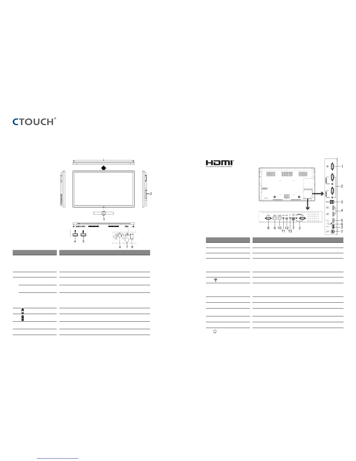 8 RS232 For remote control of the CTOUCH interactive display.