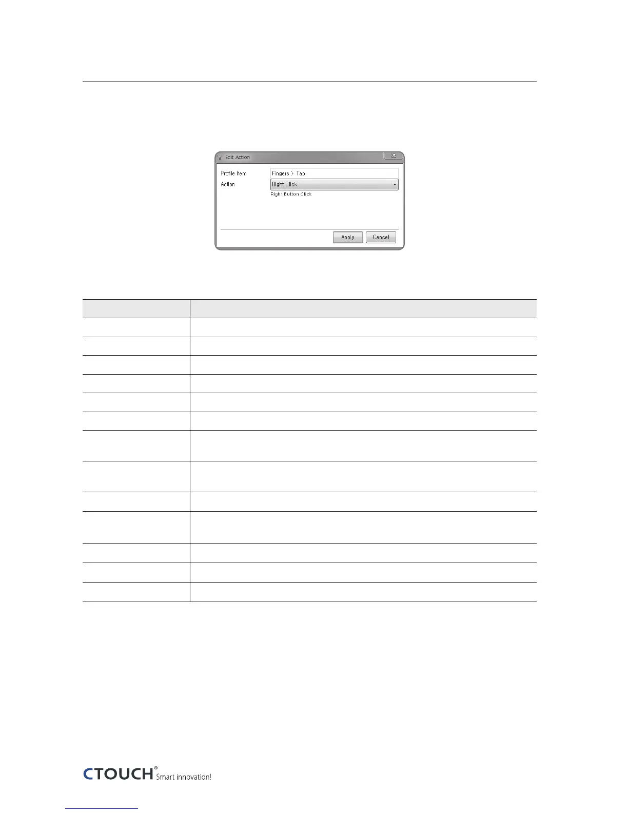 The following is the editable actions for the Fingers > Tap, Double Tap, and Long Tap type.