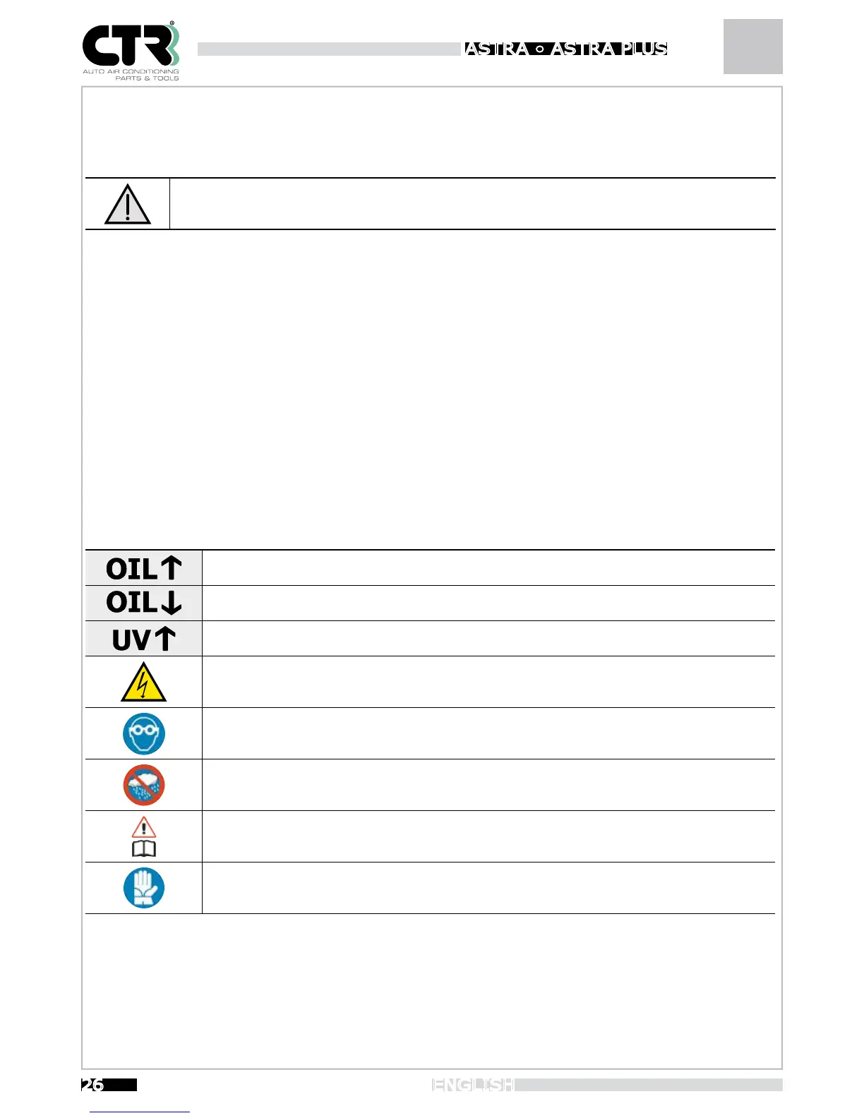 The unit is supplied with two containers to charge the system with oil and UV tracer. Should it be necessary during operation to use