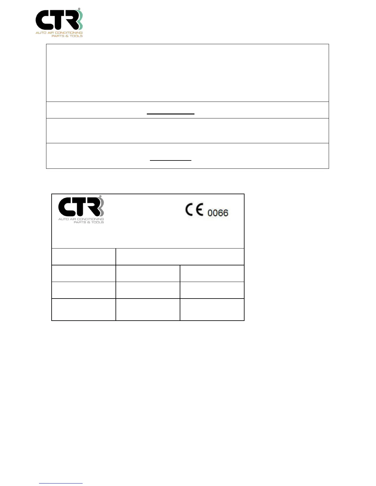 or translated without prior written consent of the owner. CTR S.R.L. shall be responsible for any manufacturing defect