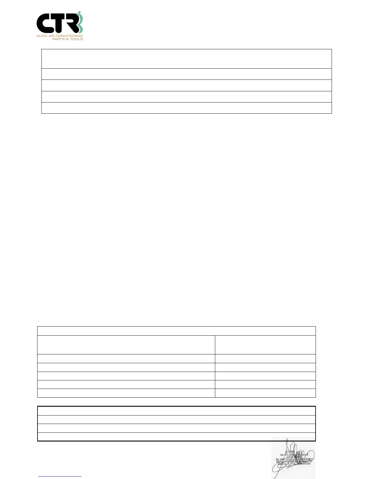 We: CTR S.R.L. Via T. ed E. Manzini n° 9, 43126 Parma (Italy) represented by its Legal Representative, declare on our sole
