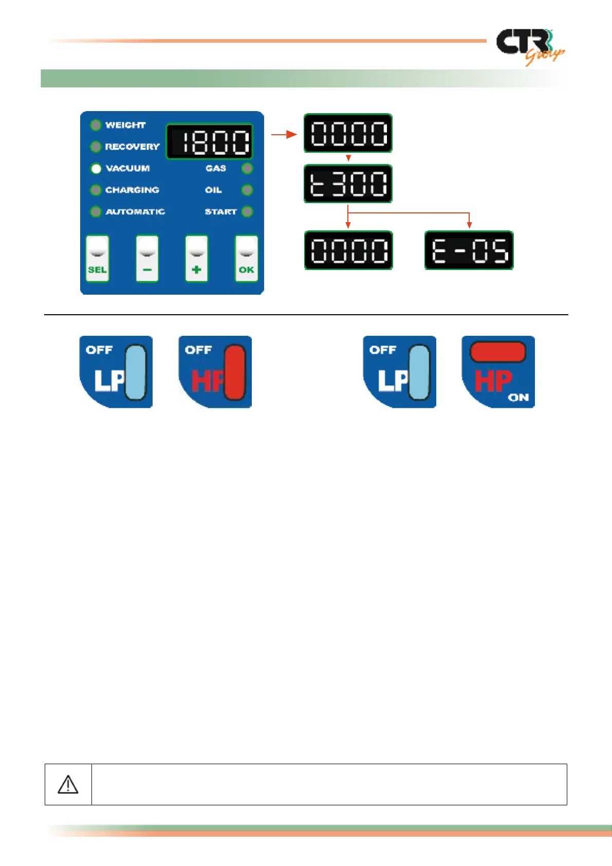 In case of leaks the operation will stop and the display will visualize the error code E5