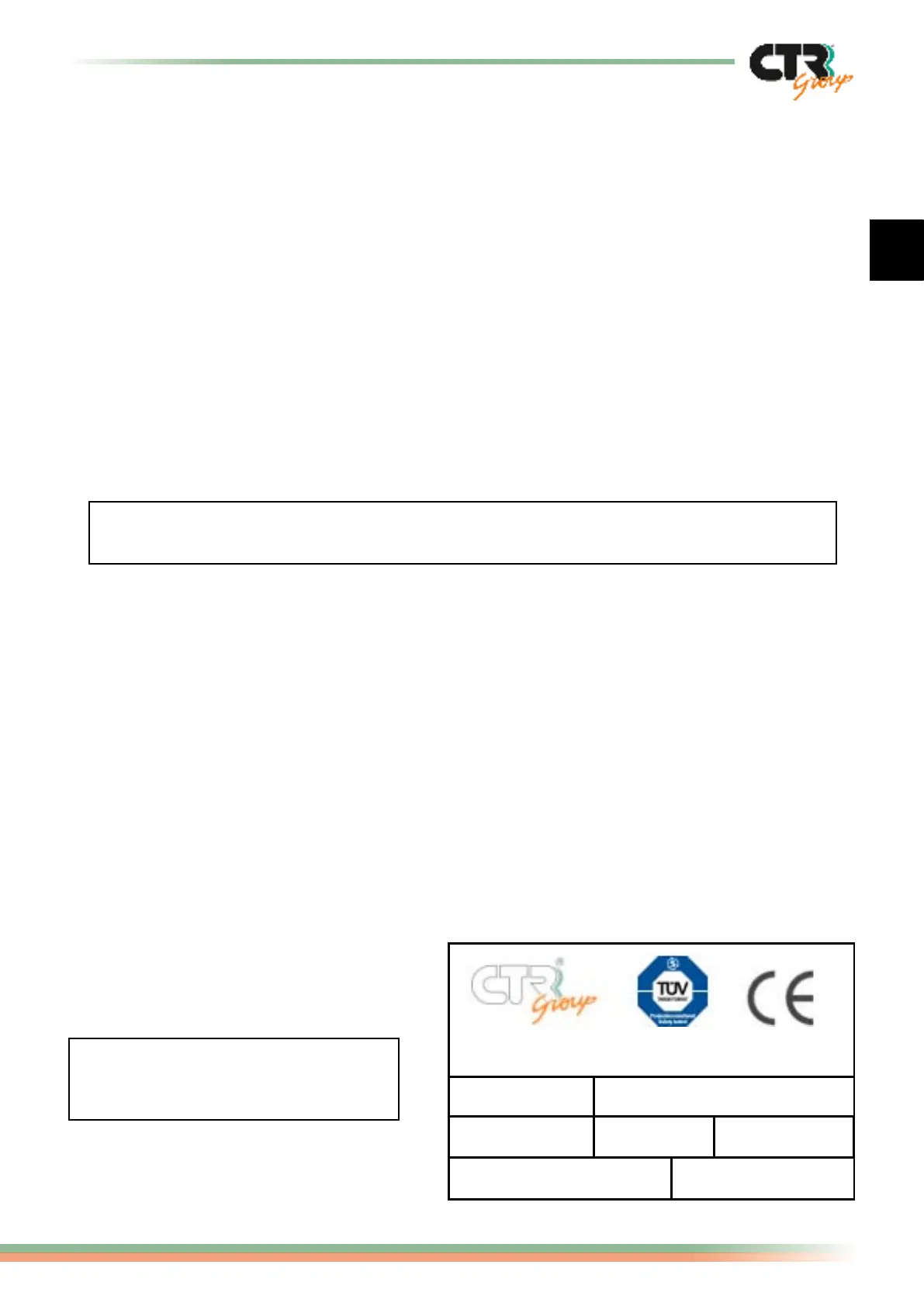 CTR Group thanks you for having chosen this product from its range and recommends that
