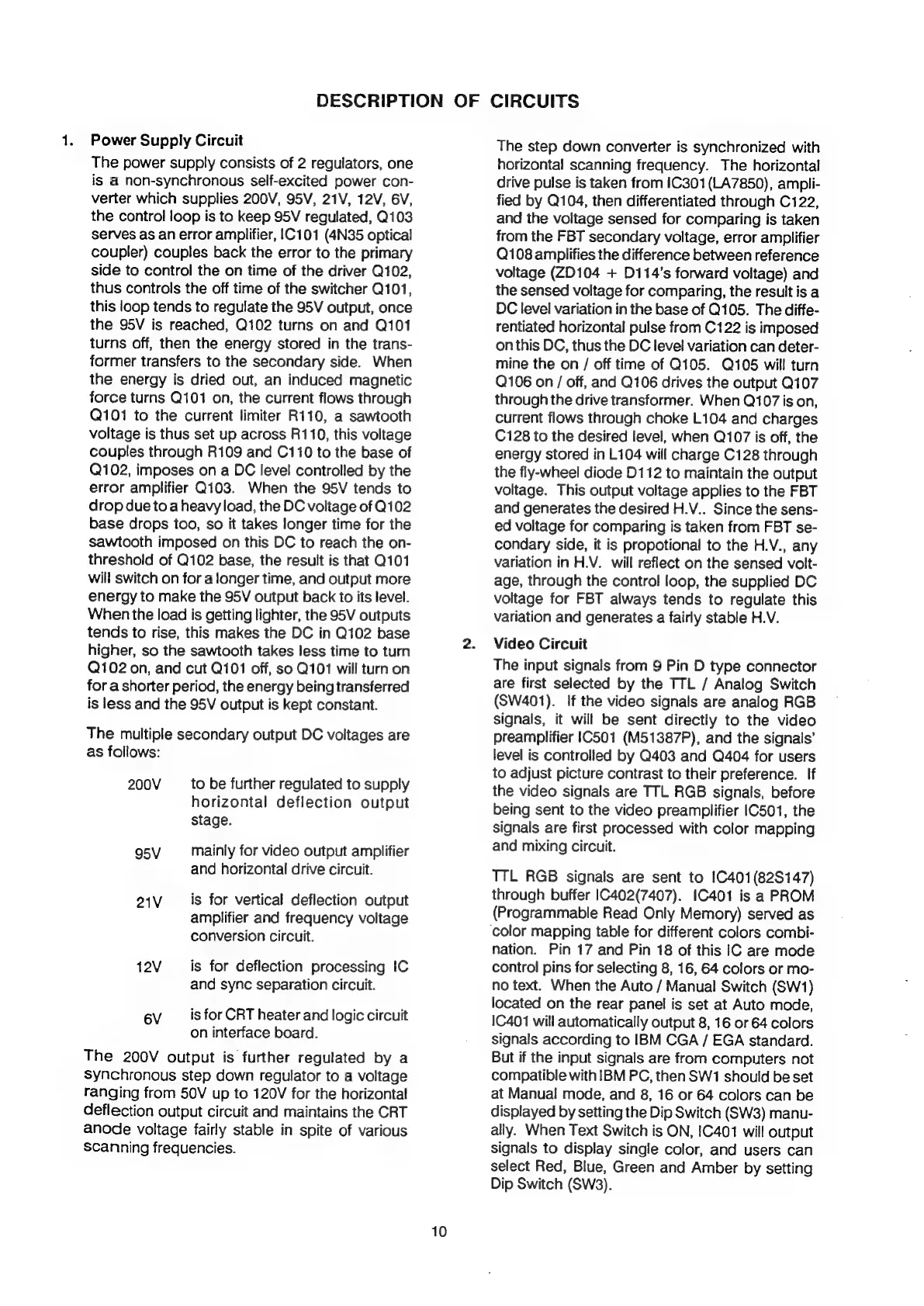 CTX CMS-3435 - Circuit Descriptions; Power Supply Circuit; Video Circuit