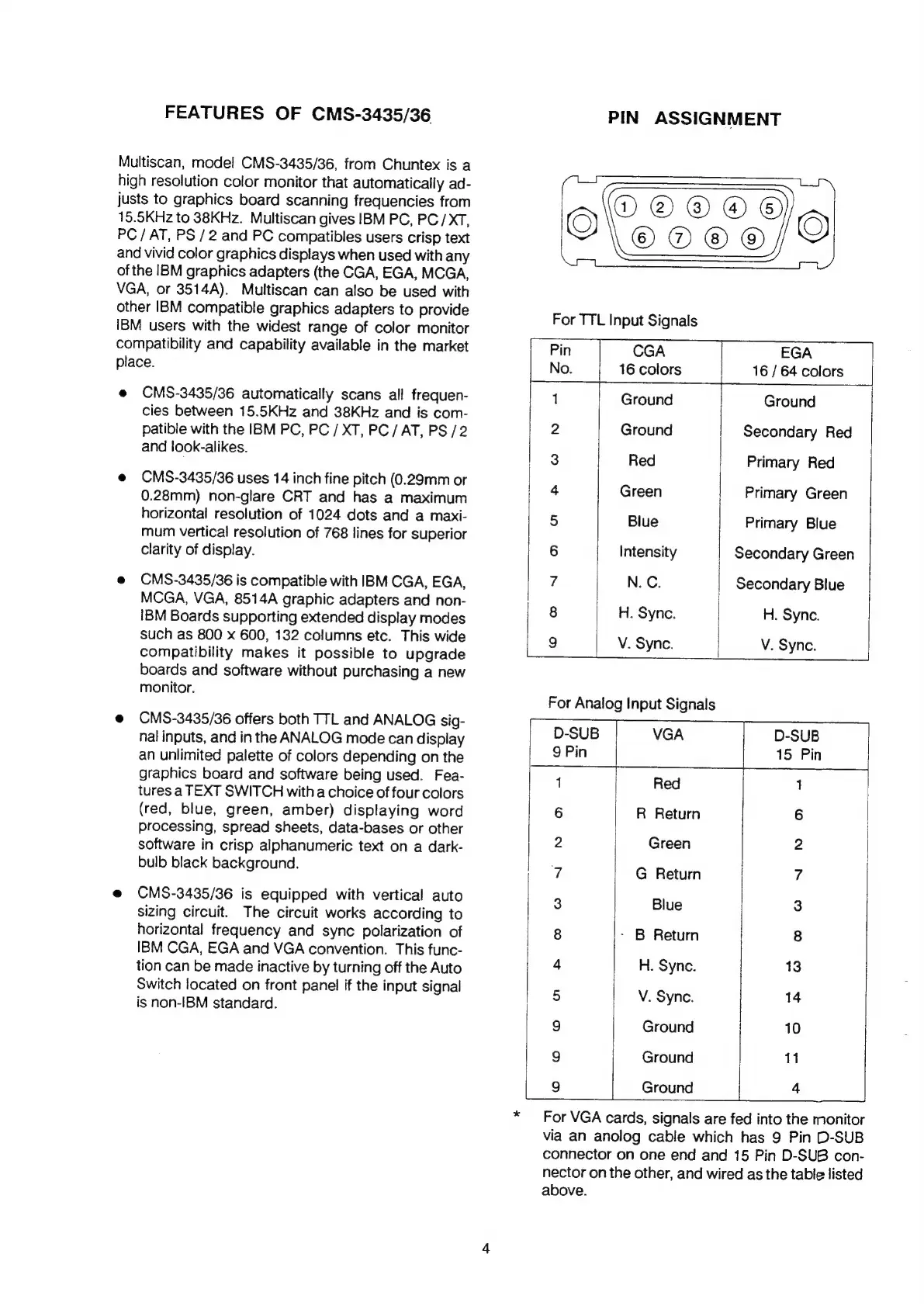 CTX CMS-3435 - Monitor Features; Multiscan Features Overview