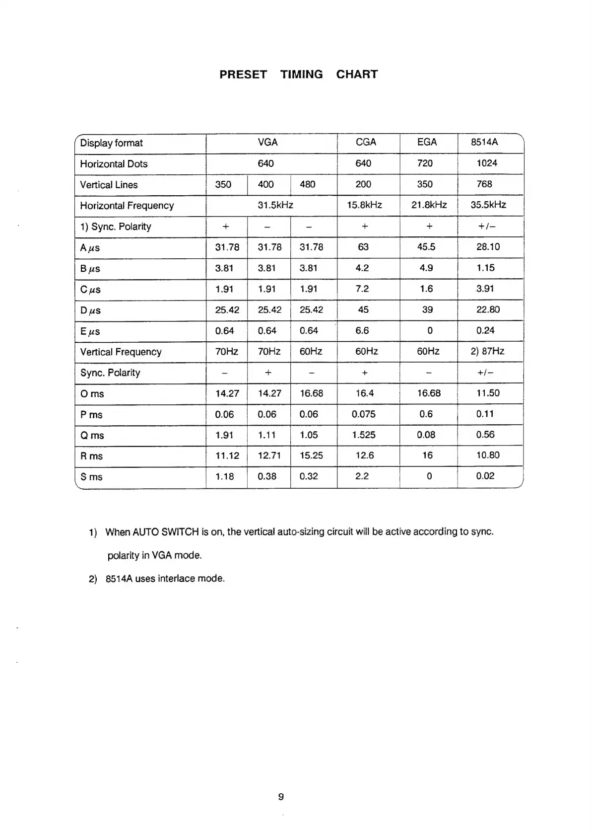 CTX CMS-3436 - PRESET TIMING CHART