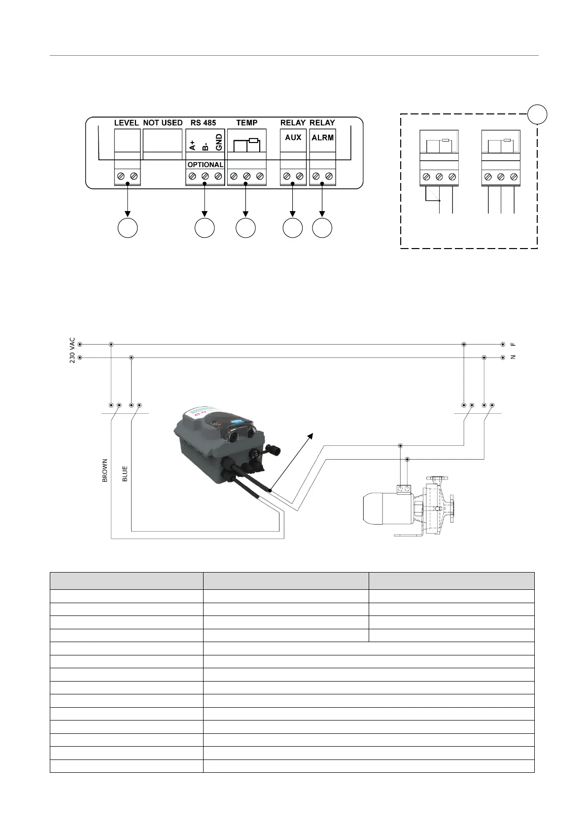 4. Sortie Relais pompe à distance (contact sec, relais 250 Vca 10 A)