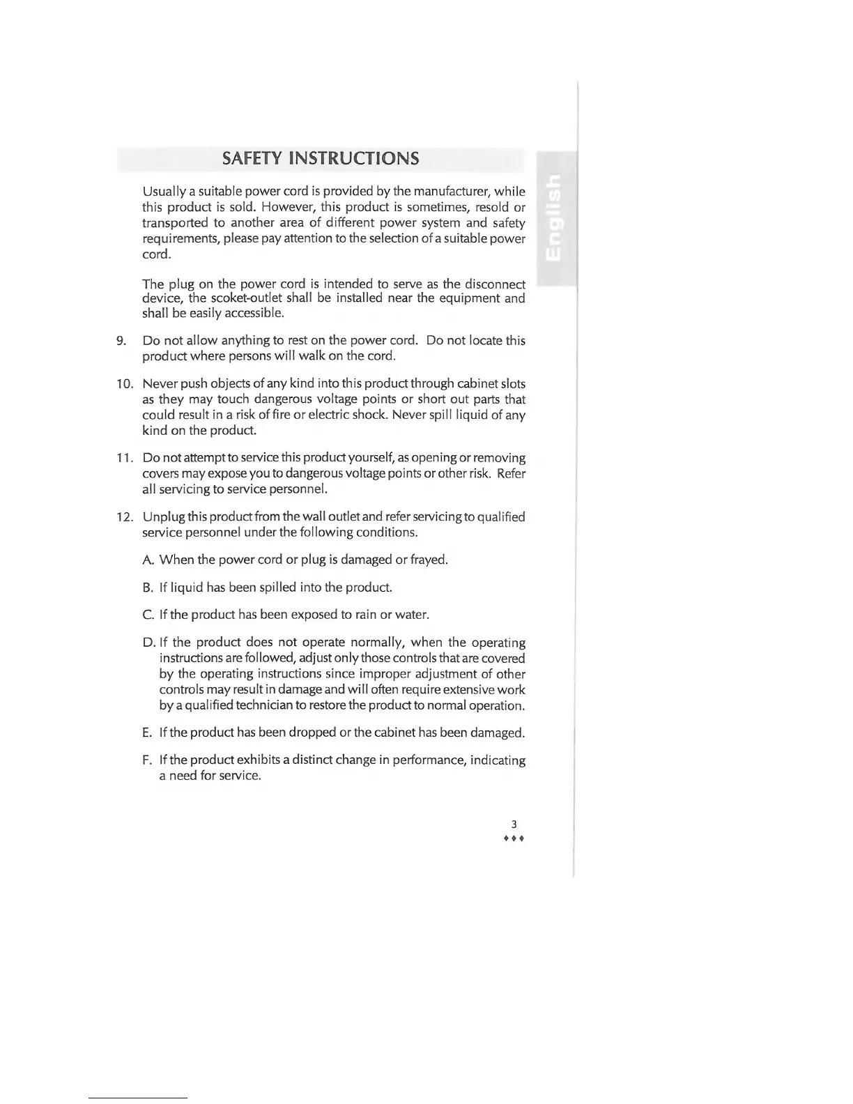 12. Unplug this product from the wall outlet and refer servicing to qualified