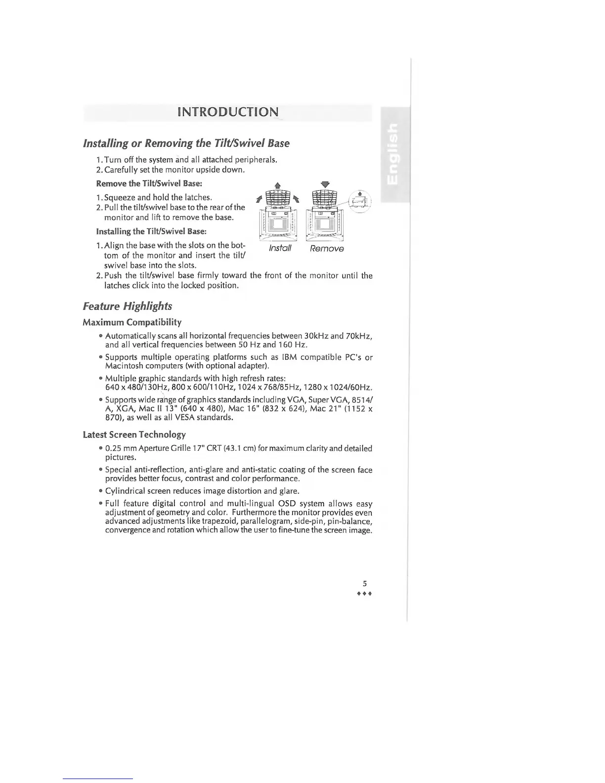 Installing or Removing the Tilt/Swivel Base