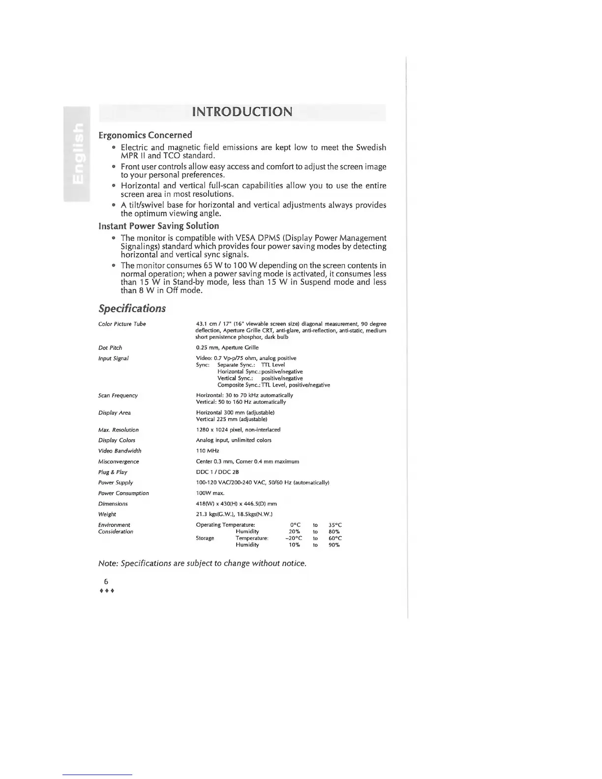 • The monitor is compatible with VESA DPMS (Display Power Management
