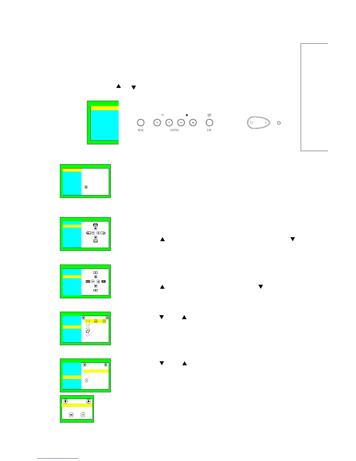 (1) Press "MENU" key to open the On-Screen menu function. Seven adjustment