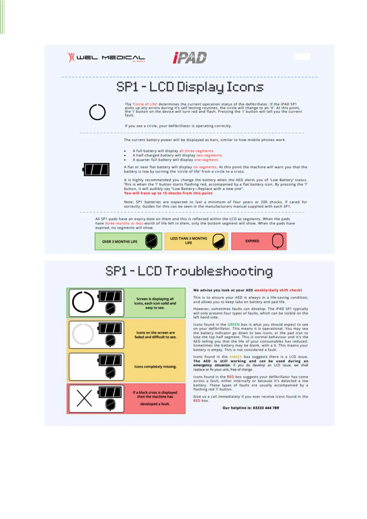 CU Medical Systems iPAD SP1 - SP1 - LCD Display Icon Meanings; SP1 - LCD Troubleshooting Guide