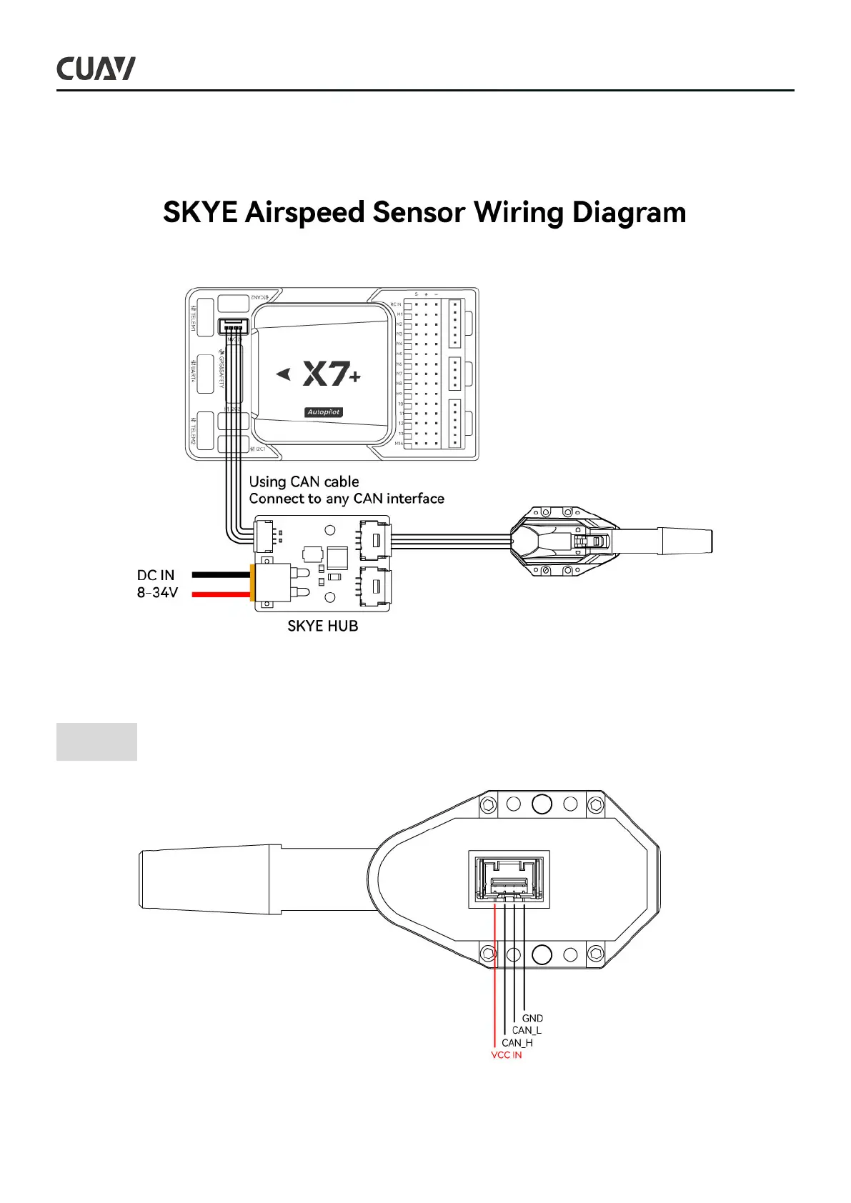 CUAV SKYE Airspeed - SKYE Airspeed Sensor Wiring Diagram; Pinouts
