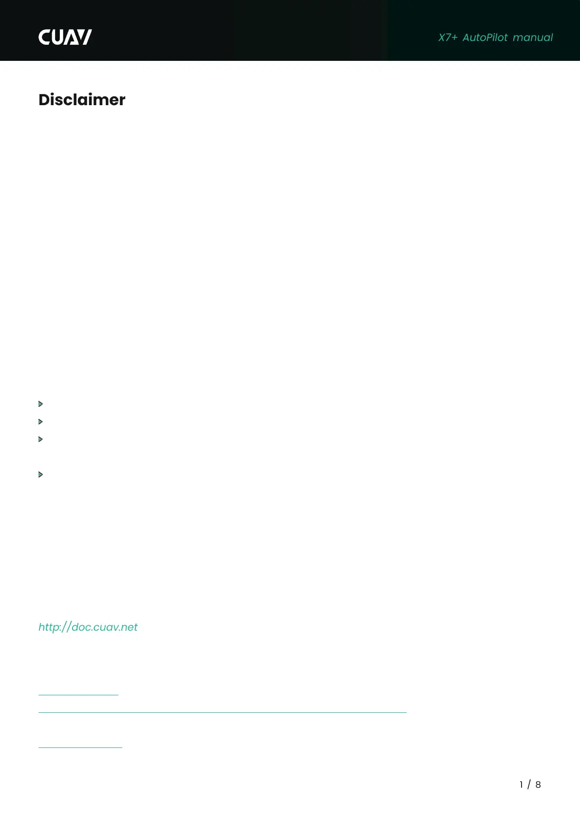 need to install and use this product in strict accordance with the instructions. CUAV is not liable for any loss