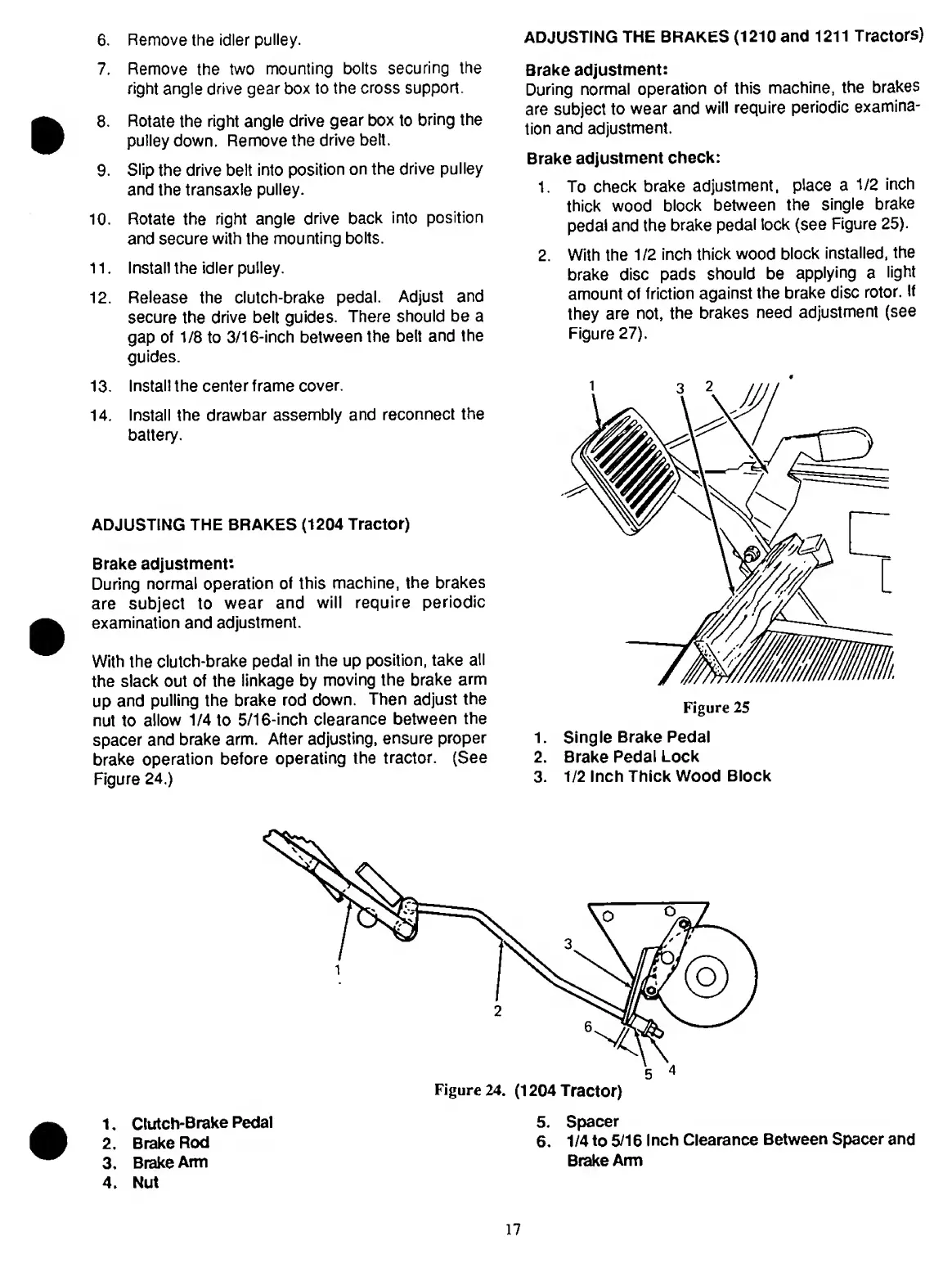 Cub Cadet 1204 - ADJUSTING THE BRAKES (1210 and 1211); ADJUSTING THE BRAKES (1204)