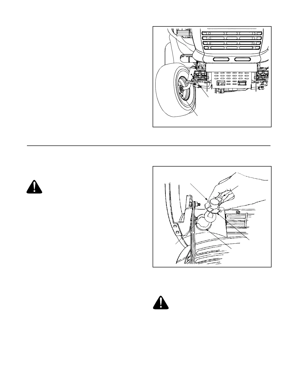 Each of the tractor deck’s front gauge wheels is