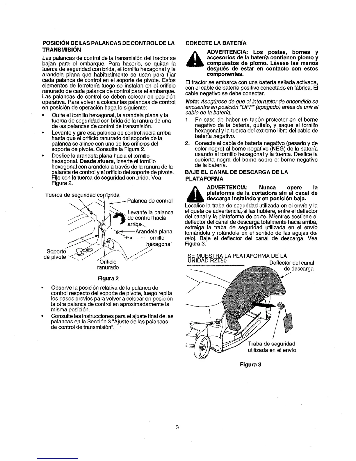 etiqueta de advertencia, si las hubiere, entre el deflector