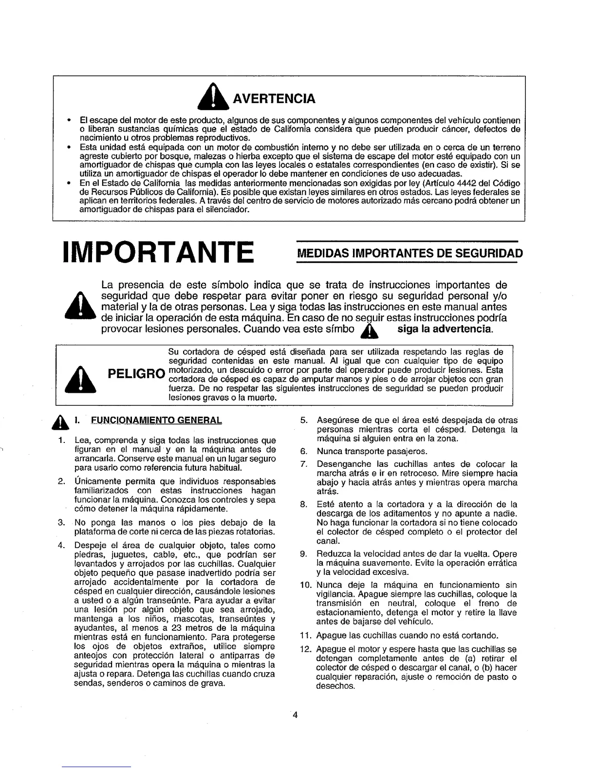 • Esta unidad est_ equipada con un motor de combusti6n interno y no debe ser utilizada en o cerca de un terreno