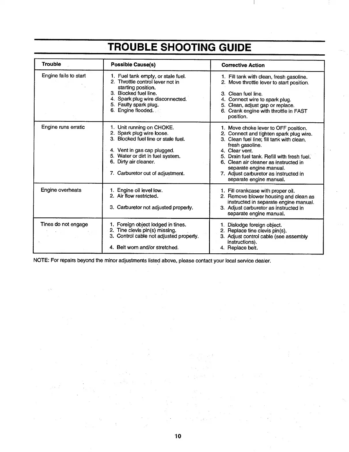 Cub Cadet 340 - Troubleshooting Guide
