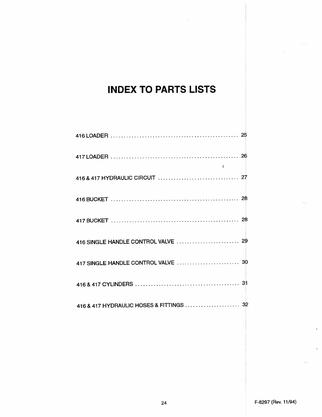 INDEX TO PARTS LISTS