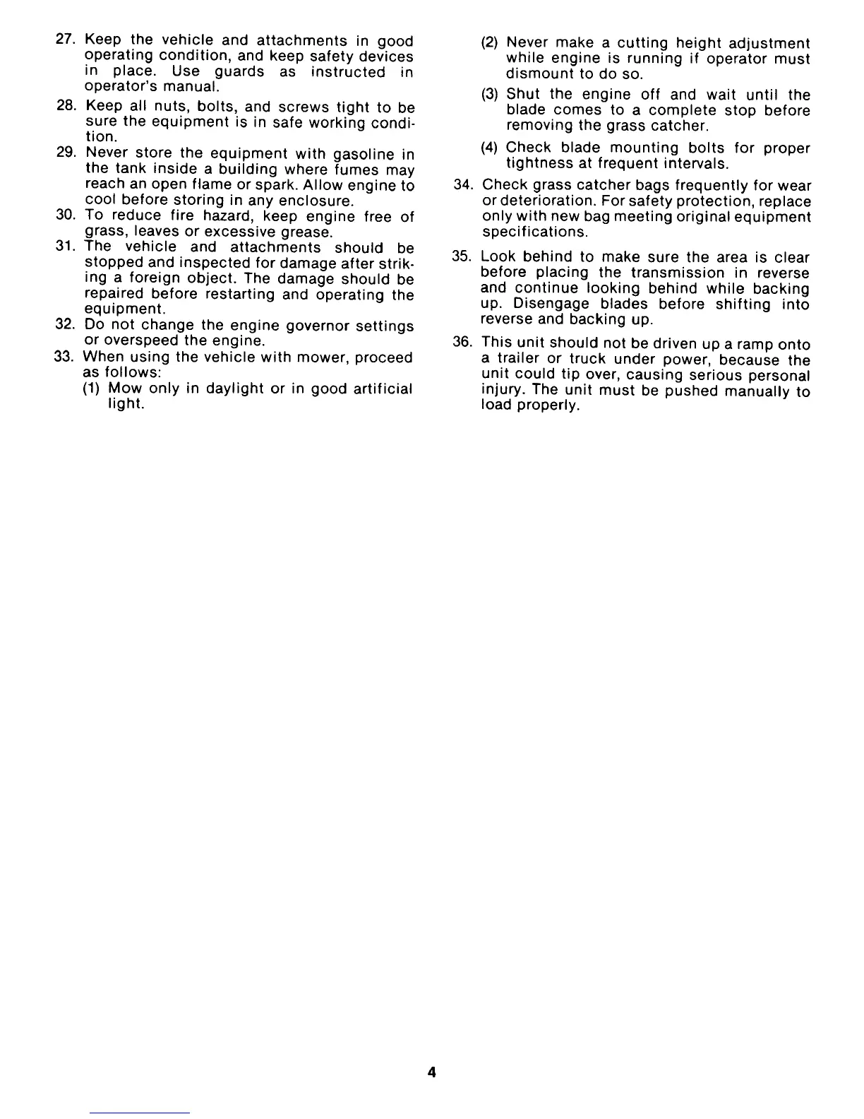 27. Keep the vehicle and attachments in good