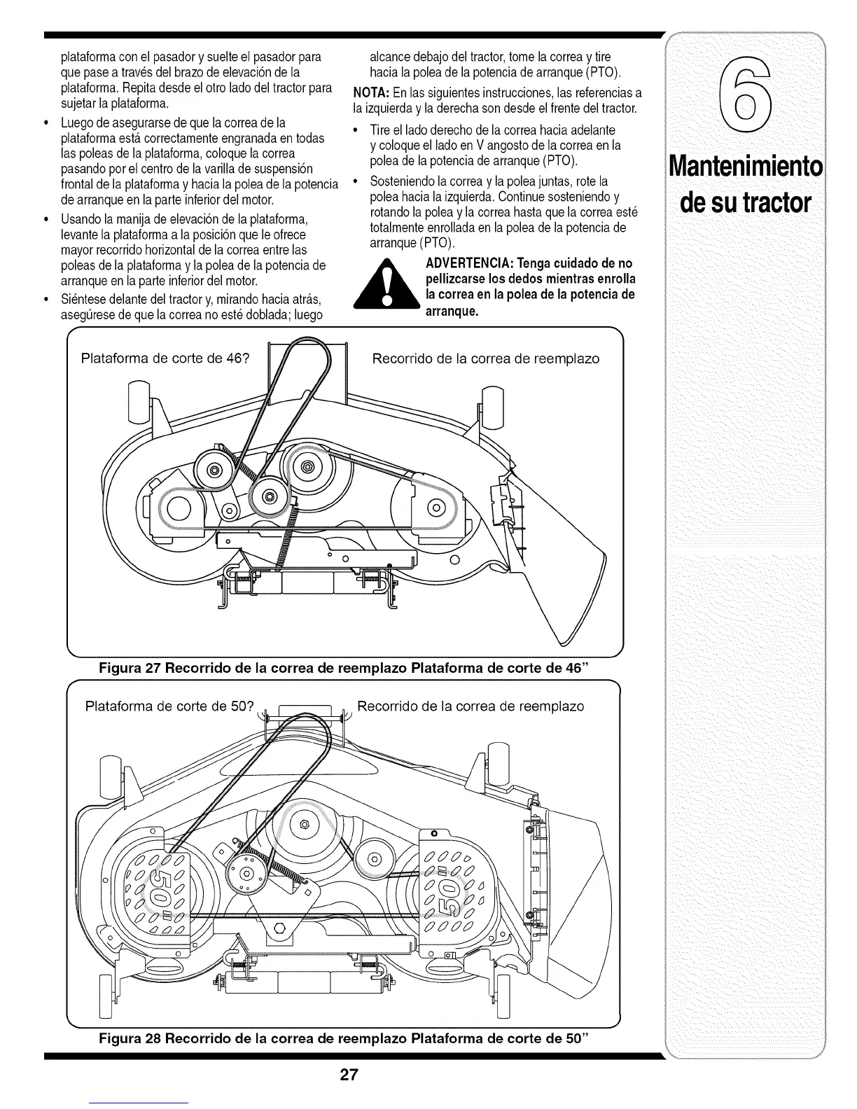 Figura 27 Recorrido de la correa de reemplazo Plataforma de corte de 46"